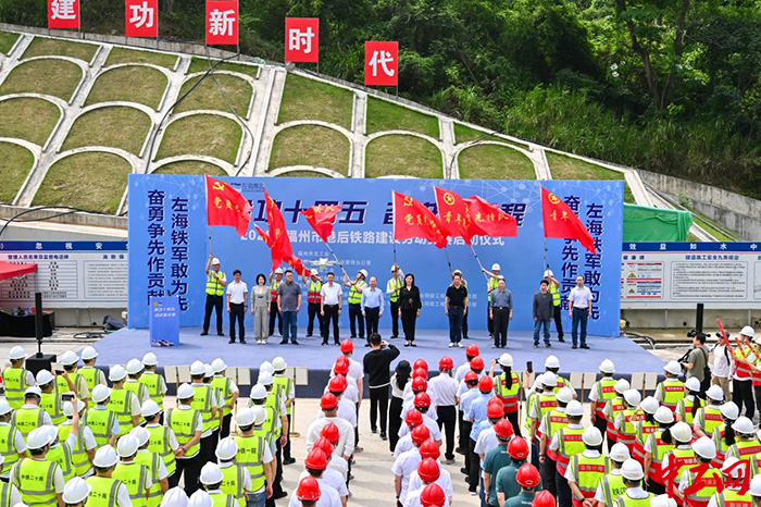 活动上,主办方还为各参赛队伍授旗。本次劳动竞赛的启动,标志着这条肩负贯通海铁联运使命的钢铁动脉,已全面吹响攻坚的号角。全体参建单位将以“百舸争流奋楫先”的拼搏姿态,投入到港后铁路项目建设,以攻坚姿态破解工程难点,高标准推进路基填筑、桥梁架设、隧道贯通等关键节点施工,以实干实绩大力弘扬劳模精神、劳动精神、工匠精神,为推动福州市交通建设高质量发展贡献力量。(郑琦 林滢)